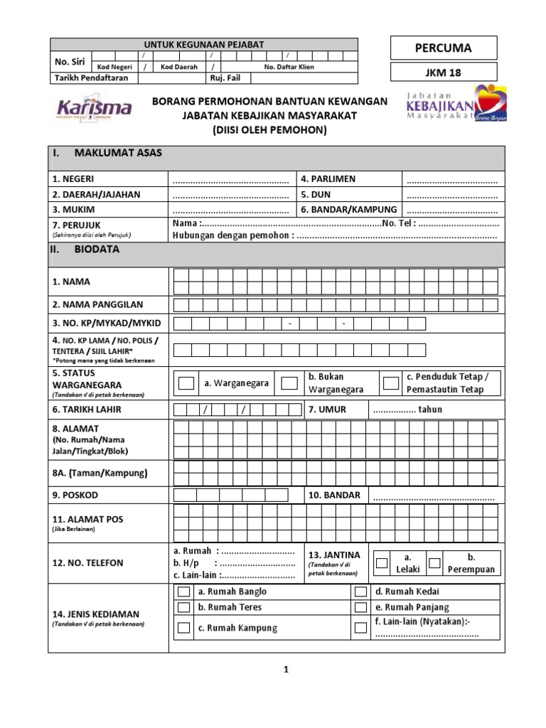 Jkm 18 Borang Permohonan Bantuan Kewangan Pdf