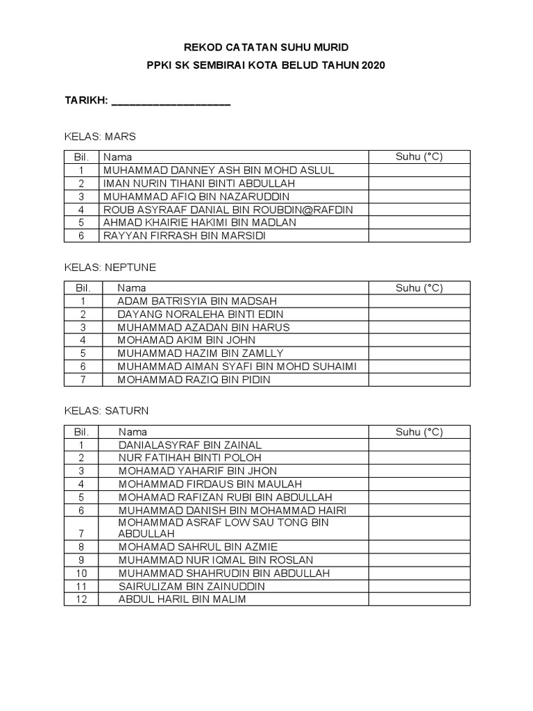 Contoh Borang Rekod Suhu Badan