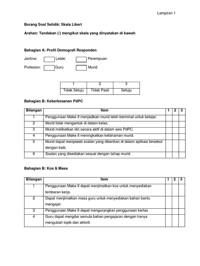 Contoh Borang Soal Selidik Produk Andri