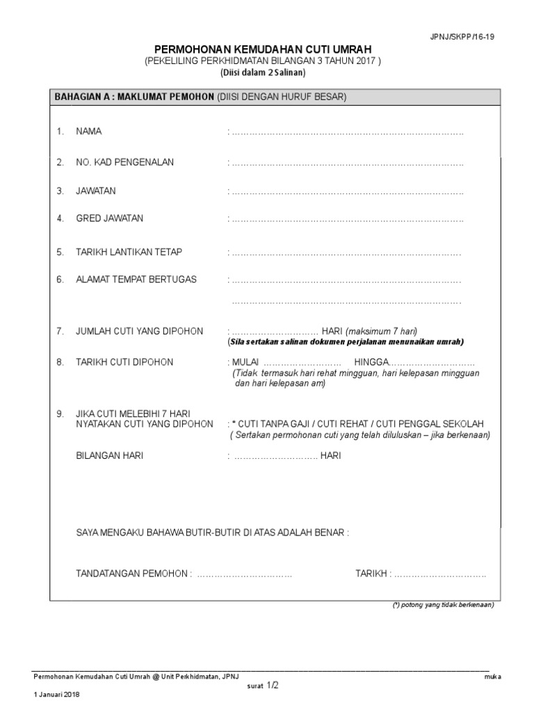 Borang Cuti Umrah 2018. Borang Cuti Umrah 2018 kerja kosong parit buntar nibong tebal kerja kursus geografi tingkatan 2 pengangkutan awam di sekitar tempat tinggal kerja kosong kolej komuniti.