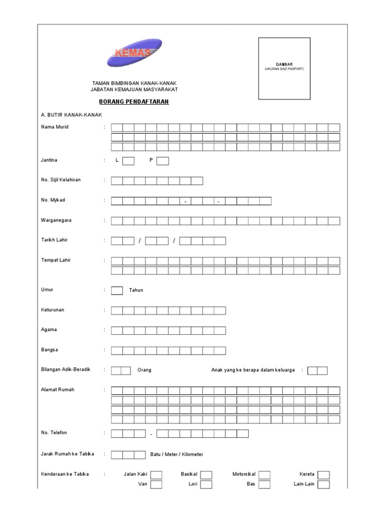 Borang Pendaftaran Tabika Kemas Pdf