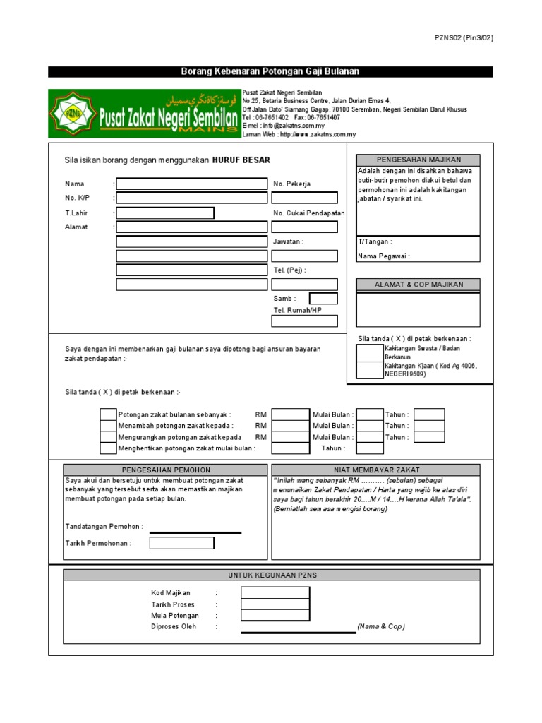 Borang Potongan Gaji Bayar Zakat Format Negeri Sembilan Pdf