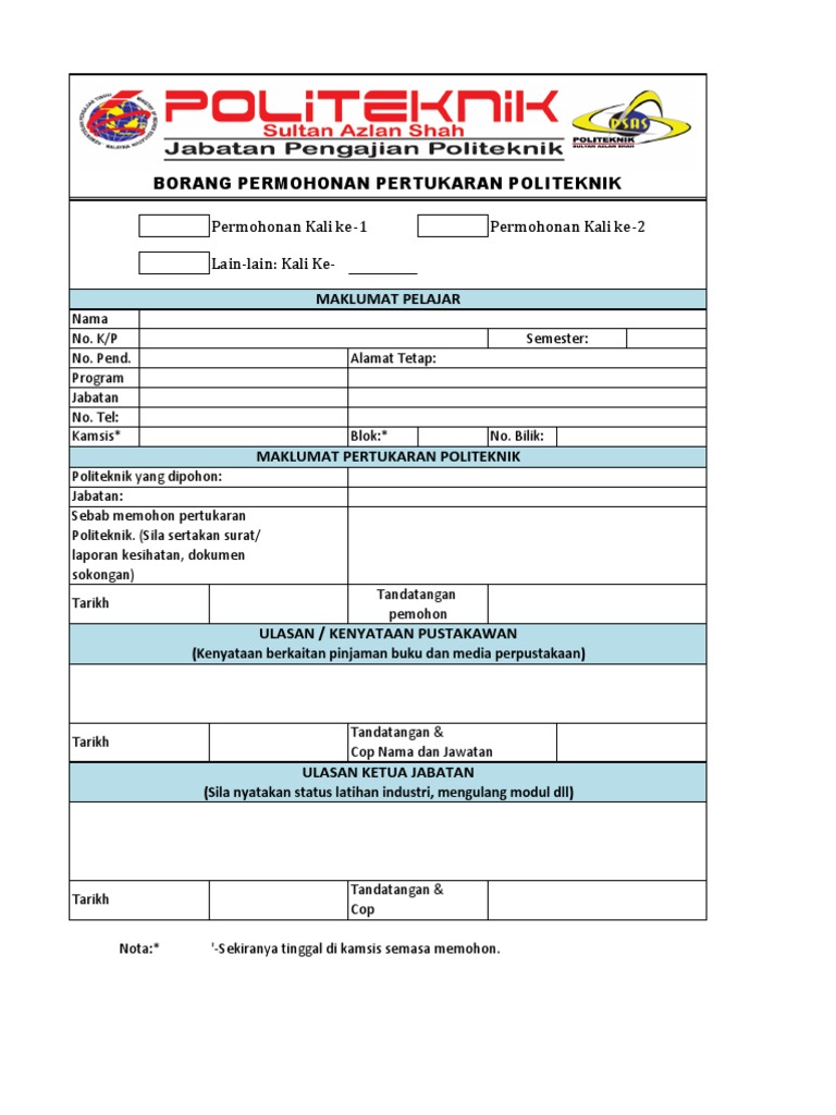 Borang permohonan ke politeknik. Semakan Keputusan Permohonan Ke Kolej Komuniti Sesi I 20212022. Klik untuk semakan keputusan ke Politeknik Klik untuk semakan keputusan permohonan baru ke. Untuk sebarang pertanyaan sila hubungi 03-8888 3837 03-8891 9341 03-8891 9117 dari jam 900 pagi hingga 400 petang Isnin hingga Jumaat kecuali pada hari cuti umum 019-868 3738 Whatsapp sahaja atau emel ke.