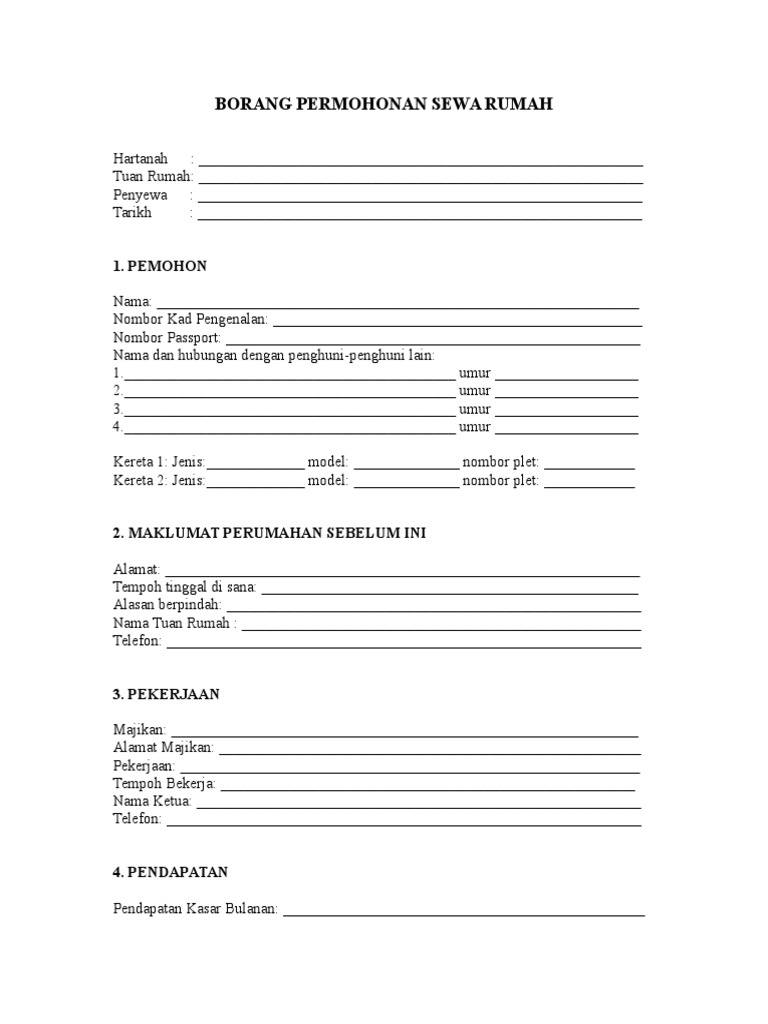 Contoh Borang Permohonan Sewa Rumah
