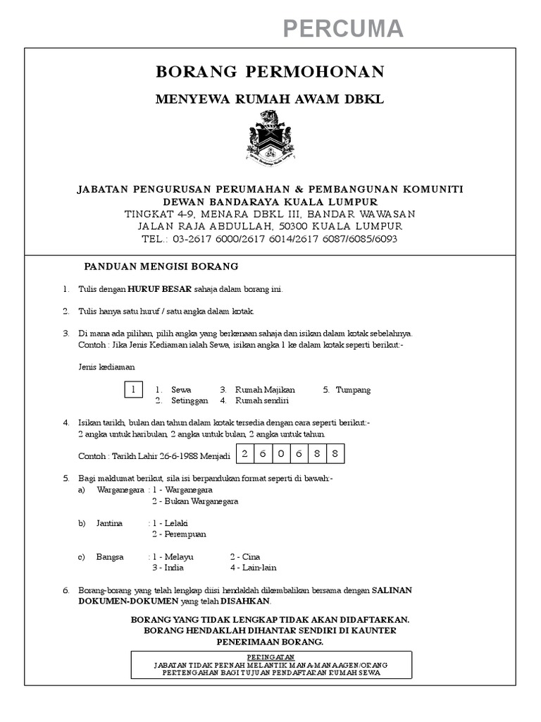 Borang Permohonan Menyewa Pdf Pdf